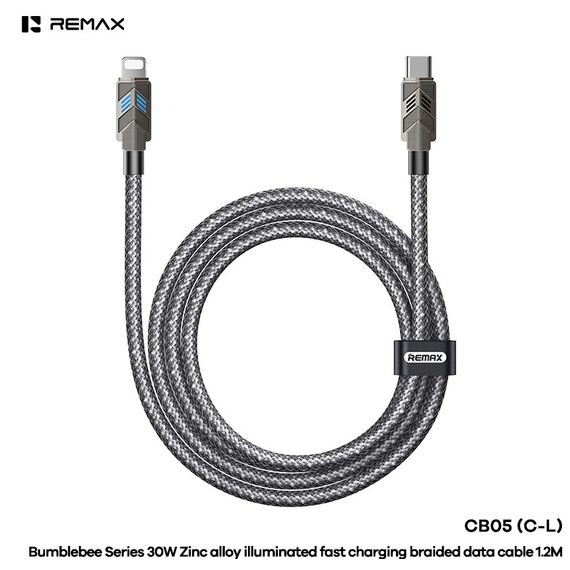 REMAX Bumblebee Series Zinc alloy illuminated fast charging braided data cable CB05 1.2M (C-L)-30W