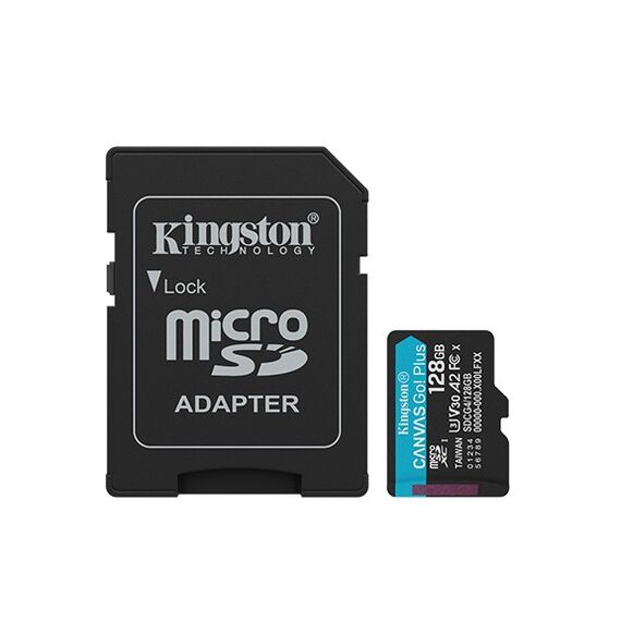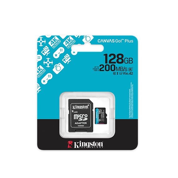 SDCG4/128GB Kingston 128GB microSDXC Canvas Go Plus Gen4 200MB/s A2 U3 V30 Card + Adapter